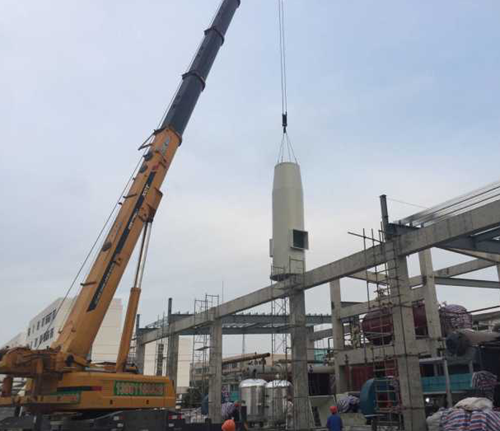 鍋爐設備到達現場時,項目經理吳玉燕緊急處理場地平整事宜,當天下午開始設備就位: